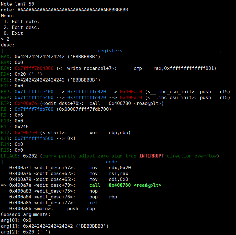다시 또 문제로 돌아와서, 위의 edit_note에 s에 strncpy를 통해 값을 넣는데 이를 이용해서 buf에도 덮어쓸 수 있다고 했었습니다.
