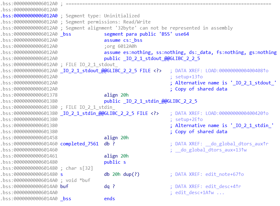우선 이 문제를 풀기 위해 보아야 할 곳은 .bss 영역입니다.