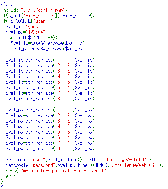 20번 인코딩 한 값을 쿠키에 넣고, 그 값을 다시 20번 디코딩 해서 보여주네요.
